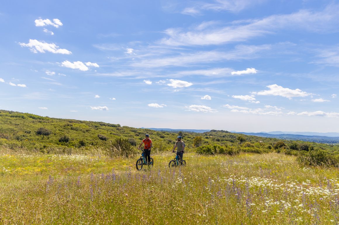 Nous avons profité d’une balade en trottinette électrique avec Philippe de Trott’in Gard pour découvrir ces paysages entre vignobles et garrigues. Les paysages sont spectaculaires.