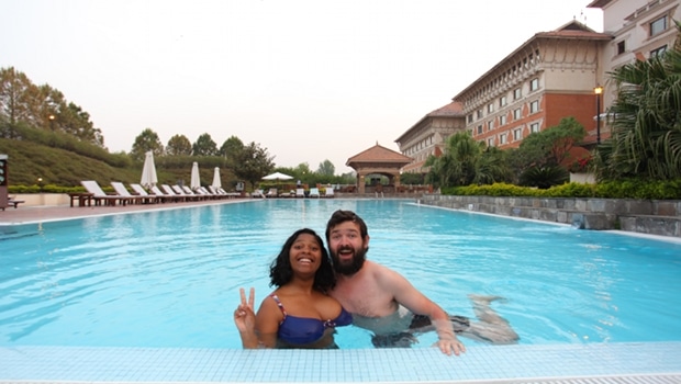 Nous choisissons le Hyatt Regency de Katmandou : un 5 étoiles à quelques pas de la stupa Bodnath et surtout dotée d’une grande piscine.