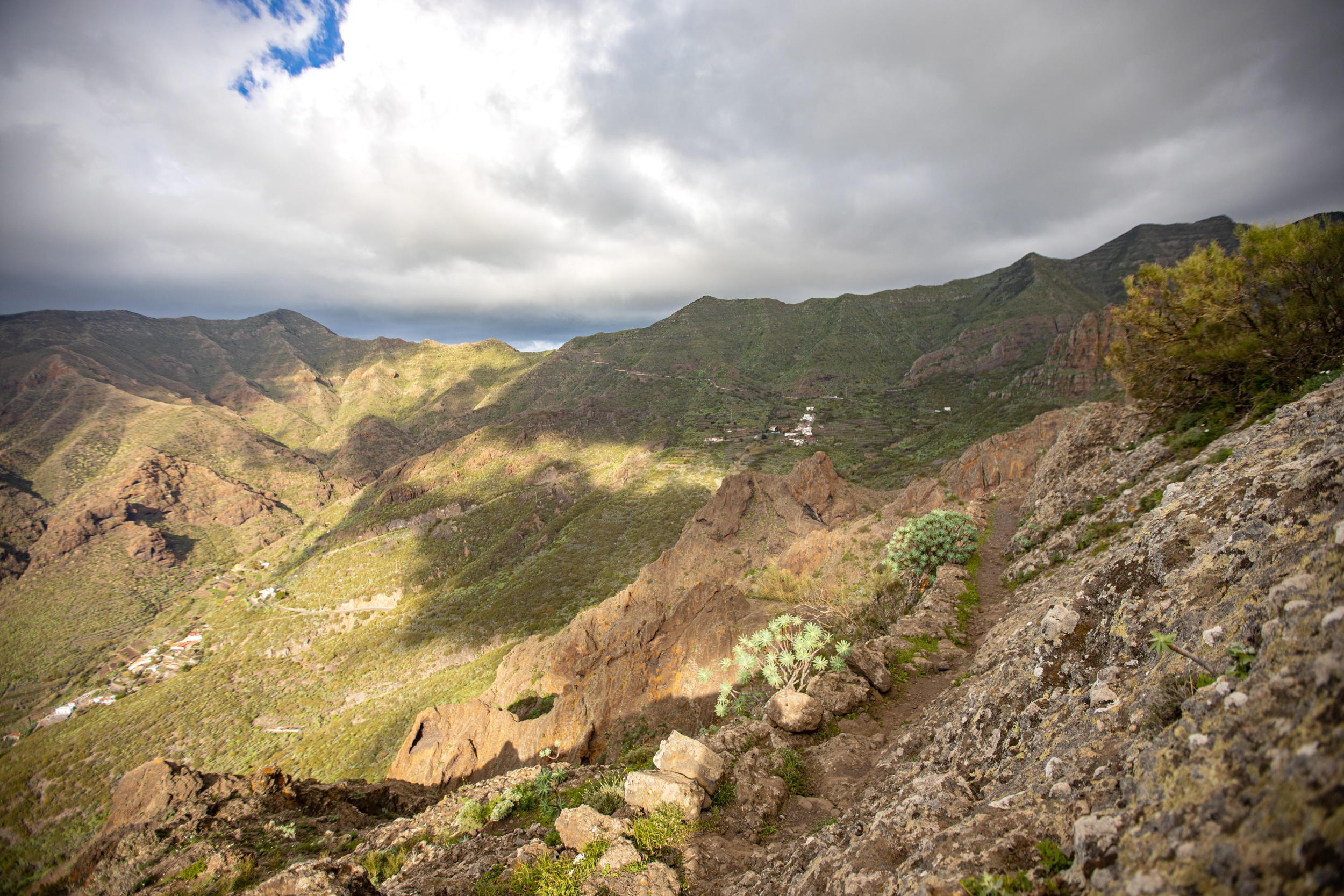 À quelques kilomètres seulement de Masca, vous pourrez parcourir le ”Carrizales mountain trail” (c’est son nom sur Google Maps). C’est une randonnée beaucoup plus courte que celle de Masca mais pas moins impressionnante, au contraire. Plutôt que de descendre dans les gorges, cette randonnée permet de suivre une crête qui surplombe les paysages abrupts. Le chemin est très impressionnant mais sans danger si vous regardez bien où vous mettez les pieds.