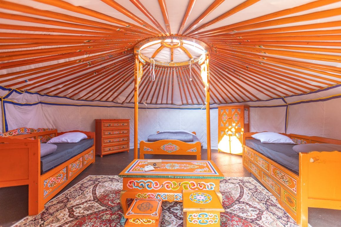 Le camping de la Côte Sauvage est situé en bordure de l’océan et de la côte sauvage. Un accès direct permet d’apprécier le coucher du soleil en fin de journée. On a beaucoup aimé l’esprit « camping à l’ancienne » même si les toilettes et douches sont à partager avec les autres occupants du camping. Le terrain du camping appartient à l’ONF et comme c’est un terrain protégé, tous les hébergements sont des hébergements légers qui sont retirés et réinstallés chaque année. Nous avons dormi dans une vraie yourte fabriquée en Mongolie avec des meubles traditionnels peints à la main. Une fois à l’intérieur, on a une sensation de bien-être, petit cocon à l’abri du vent.